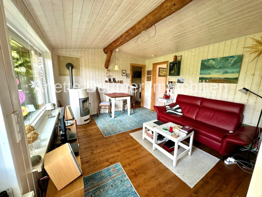 Im Jahr 2021 wurde das Haus umfassend durch eine Holzhausbau-Firma saniert und technisch wie optisch auf einen modernen Stand gebracht. Eine Innendämmung, neue Fenster und Türen, Fußbodendielen in allen Wohnräumen sowie frische Anstriche sorgen für ein angenehmes Wohngefühl. Das Wohnzimmer wurde zusätzlich mit neuen Wand- und Deckenpaneelen ausgestattet und bildet heute den gemütlichen Mittelpunkt des Hauses.