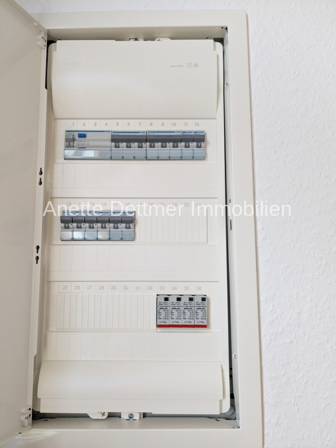 Sicherungsschrank, Zuleitungen EG inkl. FI-Schalter